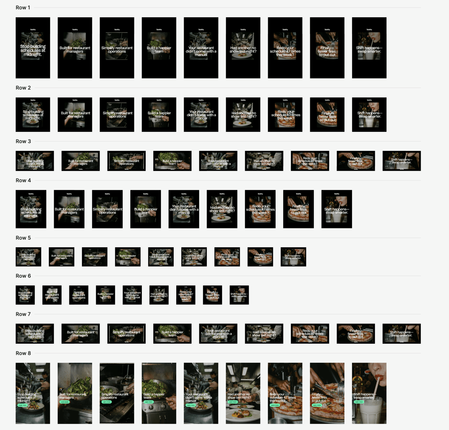 Now Figma buzz comes in: I pull this spreadsheet into presets I've hand-made in Figma buzz to create variants with all of our copy and image variants. Figma buzz will combine each combo into each one of your templates. Boom. Tons of variants with the click of a button! All of these (and many more!)
