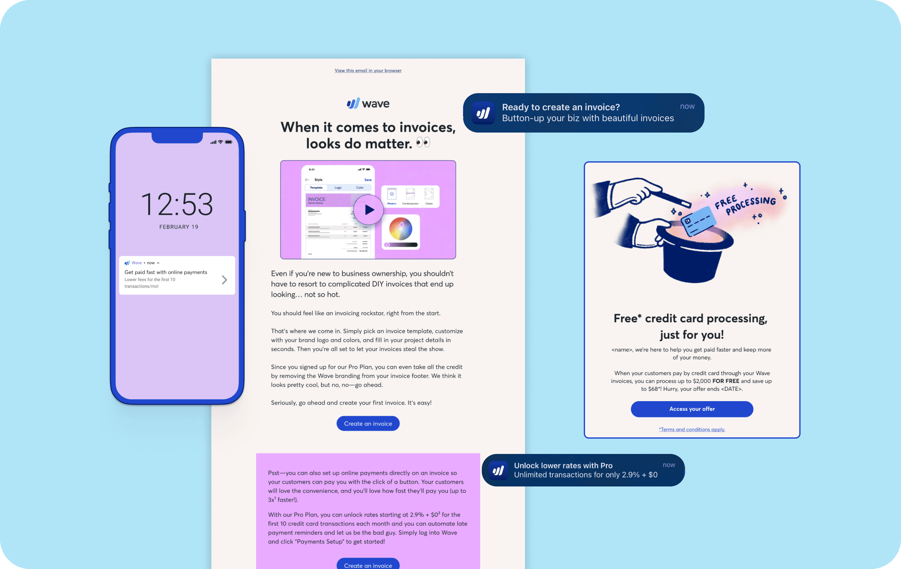 Within this new journey, we were able to tailor messaging towards the customer's specific intent. Now were were also able to reengage a customer if they fell off during the registration process. Customers would be brought through our suite of products in order of relevancy, and upsold to the Wave Pro plan if they were not already a Pro customer.