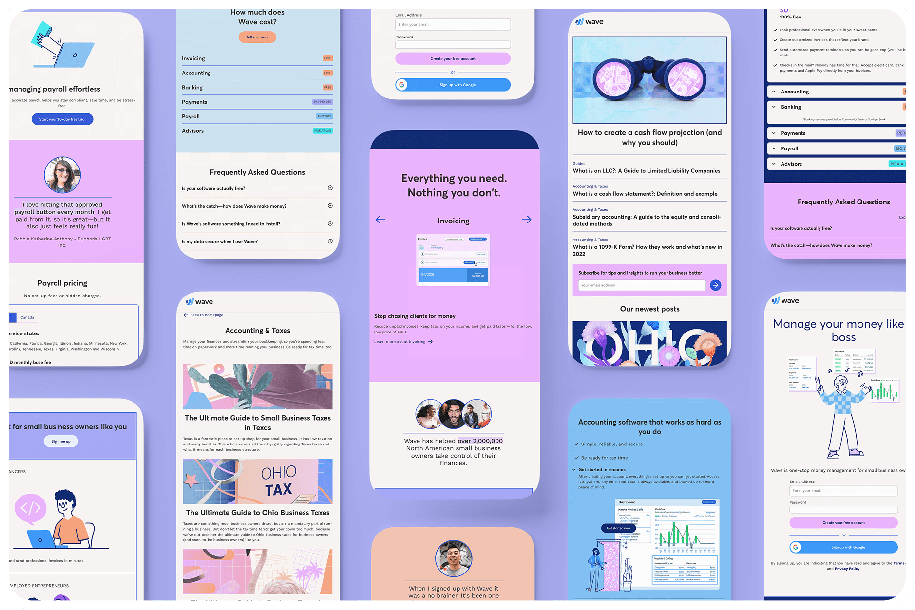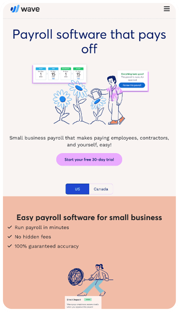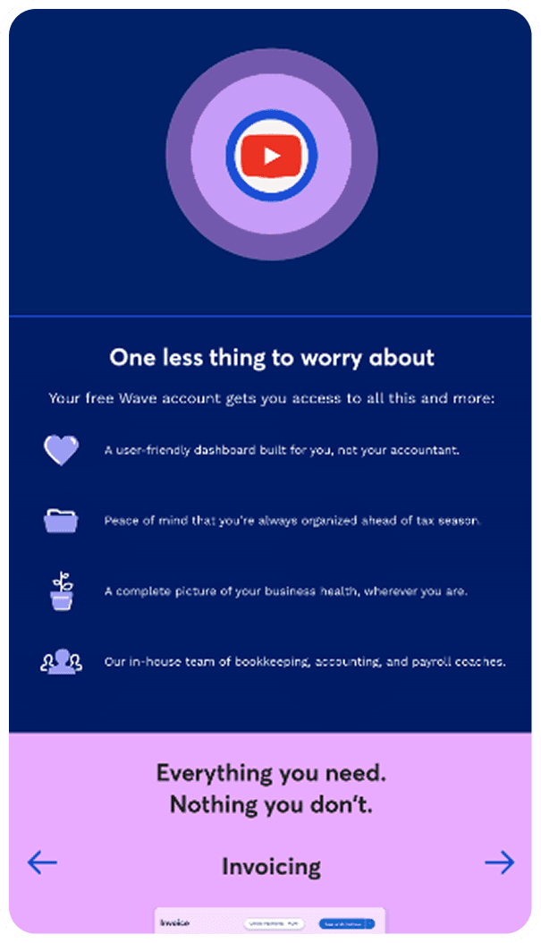 In addition to low-aided an unaided awareness, we noticed that newly registered users weren't taking full advantage of the full-suite of product offerings in Wave’s suite of tools. The majority of customers were only using the free options (bookkeeping and invoicing) and were unaware of the advantages of leveraging the entire suite of Wave products.